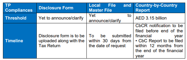 • Disclosure Form must be filed along with the Tax Return. Local File and Master File has to be filed within 30 days following a request by the Authority.